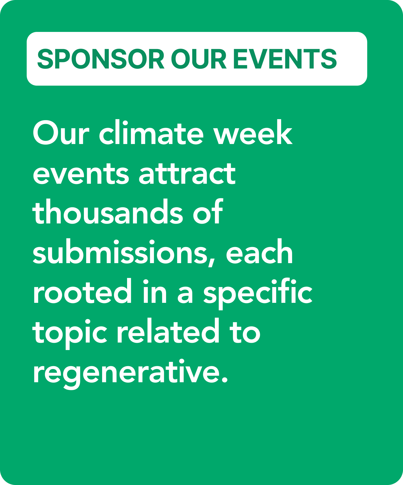 The State of Regenerative Agriculture (SORA) at Climate Week NYC emerged from a simple idea: accelerating the regenerative transition requires shared understanding and direction. SORA’24 brought together sector leaders to reflect on progress, surface priorities, and align capital, research, and action around the most urgent opportunities ahead. This year, we’ll go beyond talking, and build a shared roadmap with our partners for 2026. We’ll also make it possible for our partners to host events.